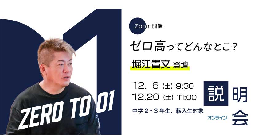 「堀江貴文参加の学校説明会」[12月6日(土)、20日(土)]